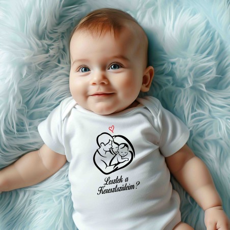 Megannyi érzelem, meglepetés és boldogság egyetlen ruhadarabban. A feliratos rövid ujjú baba body egyedi és kreatív módja annak, hogy felkérjék a keresztszülőket.